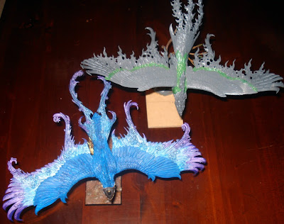 I don't like wasting parts and the double kits these days are a boon. I had already made a Frostheart Phoenix from the kit and it also contains the incomplete parts to make a Flamespyre. Luckily in the spare bits box I had a unused IOB Griffon body. Mad frankenstein science inpired me to double the Phoneix with only the one kit. Here's how I'm going with hobby recently.
